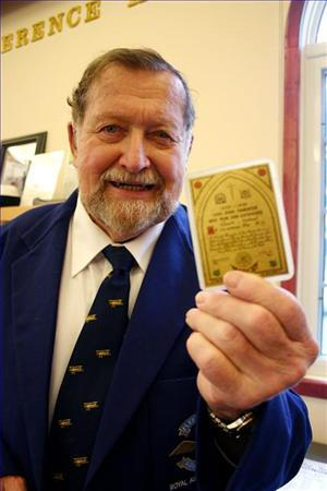 H. Knoll presented Geale with a card recognizing his war service to his country.